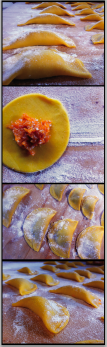 richiudere a metà. Far aderire bene i bordi affinchè non si aprano nella cottura. Una volta finito, lasciare asciugare i tortelli su una spianatoia per circa un’ora.